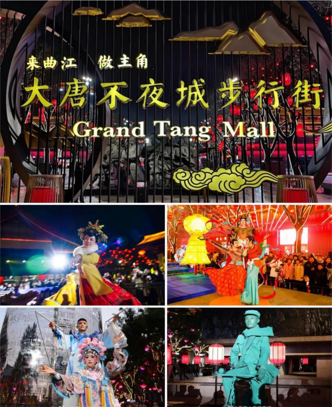 等天微微暗下来的时候,才是打卡大唐不夜城的最佳时机,不倒翁、石头人、诗仙李白、悬浮武将、飞天女神、提线木偶,灯光秀、这些往日的流量热搜,给未曾见过真容的老师们满满的猎奇感。浩浩荡荡的元动力队伍朝着网红打卡地大唐不夜城前进,望着秦砖汉瓦堆积出的古都雄姿和晨钟暮鼓演绎出的盛唐气魄,附着人流在不夜城走上这么一遭,那一瞬仿佛置身于千年之前的繁华街市,大唐璀璨风采尽收眼底,让人甚是留恋。
